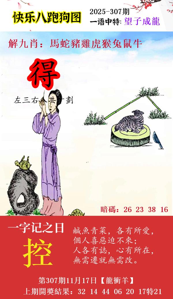 | 307期五肖 | 牛虎羊兔狗 | 开:?00中 |